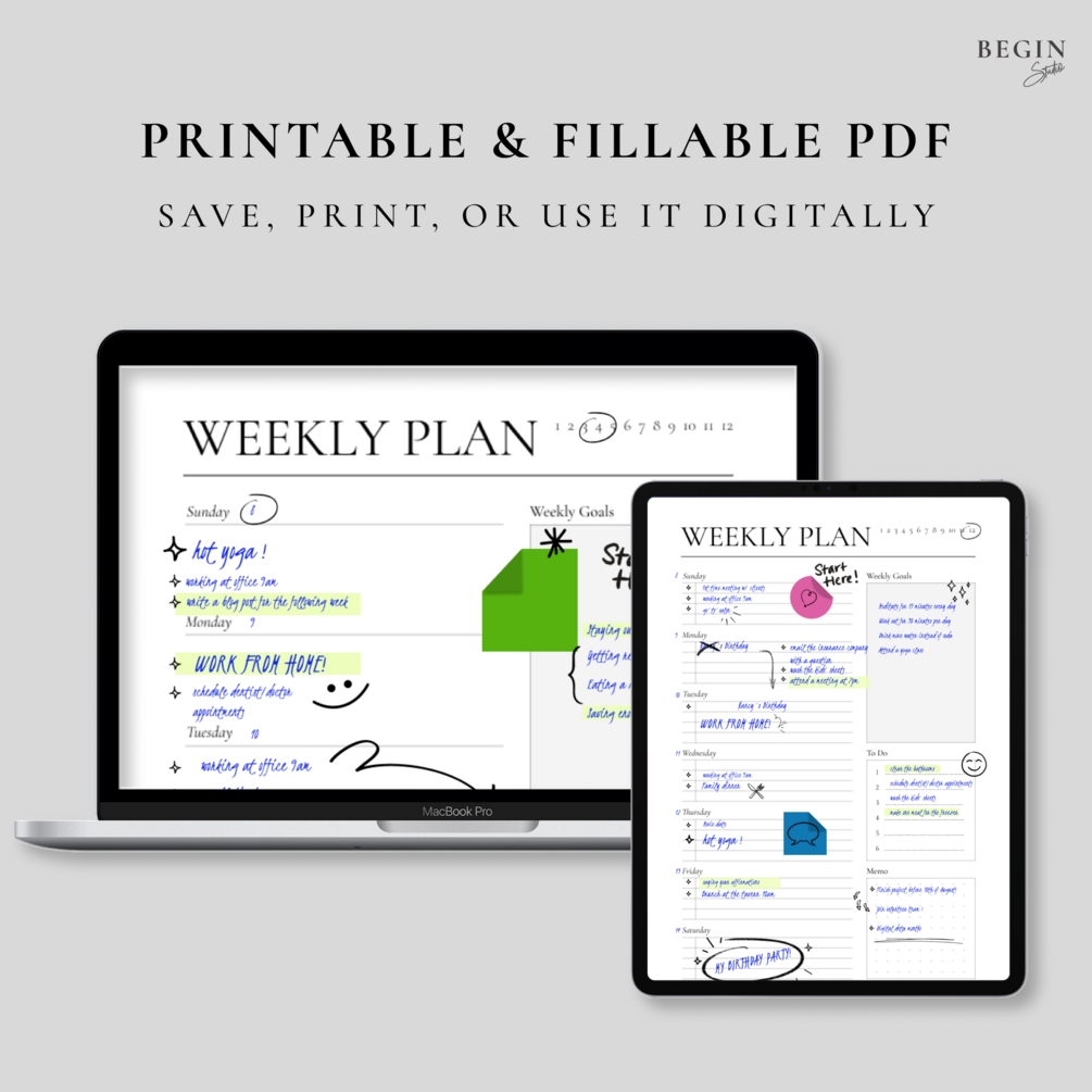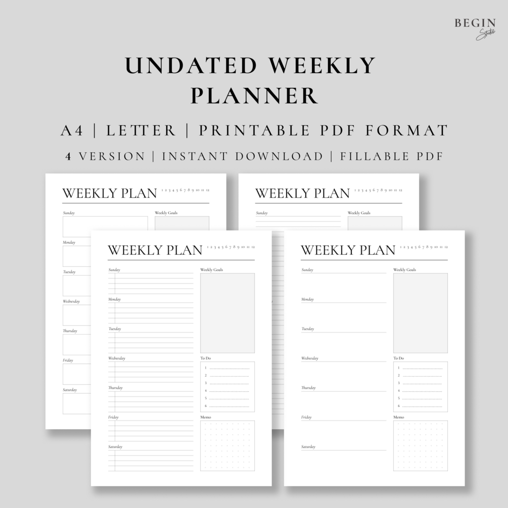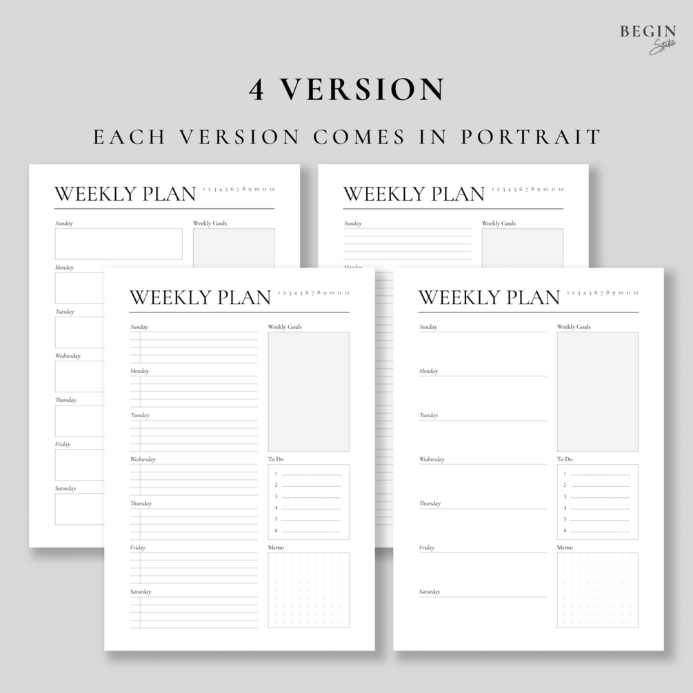 Introducing Undated Weekly Planner page, designed for our customers who values simplicity and functionality. With its sleek and minimalistic layout, this planner page allows you to focus on what's important: planning and organizing your week.