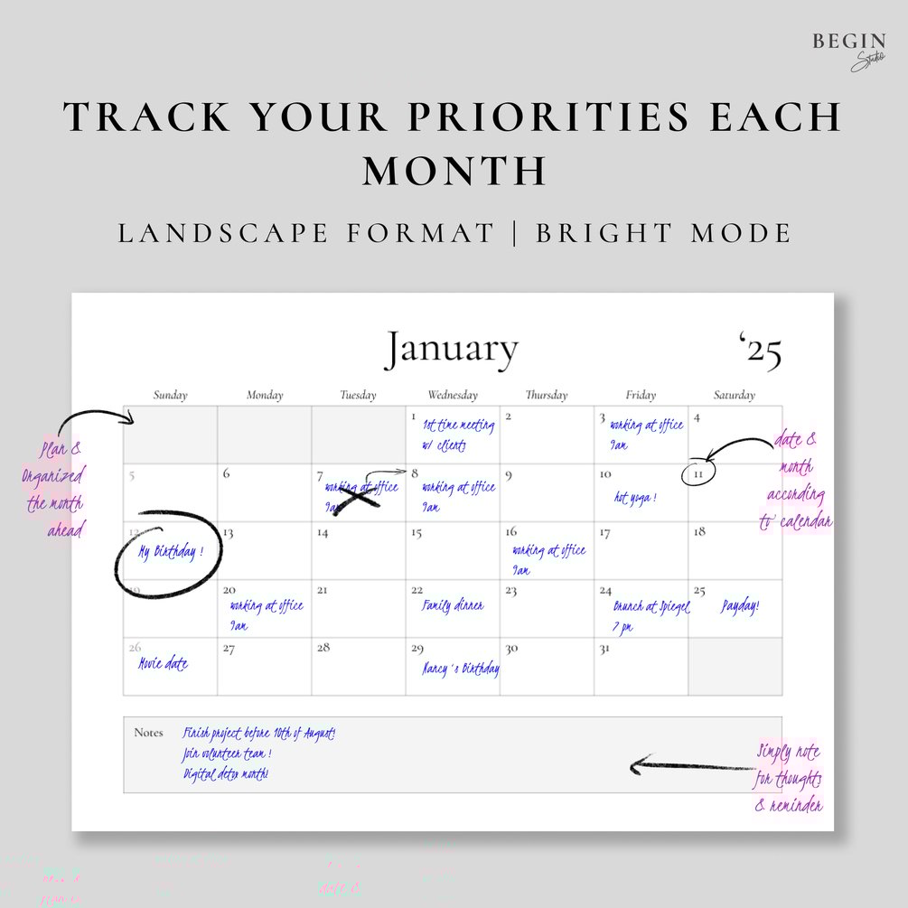 Introducing 12 Monthly Planner Page, designed for our customers who values simplicity and functionality. With its sleek and minimalistic layout, this planner page allows you to focus on what's important: planning and organizing your month.