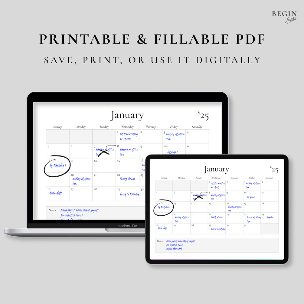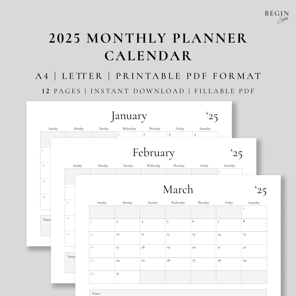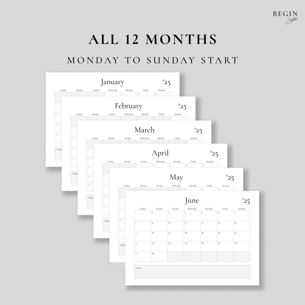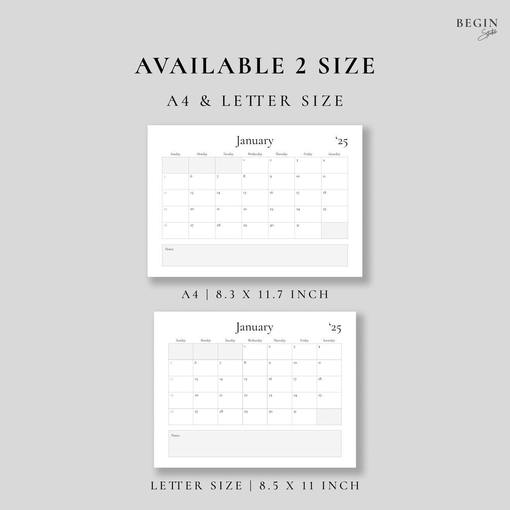 2025 Monthly Planner Printable | Dated Calendar Pages | Digital 2025 Desk Calendar | A4 / Letter Size | Instant Download | Digital Planner