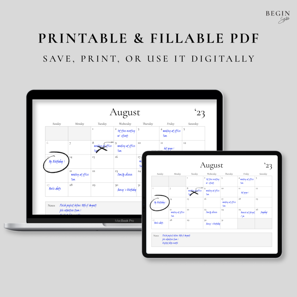 Each month is presented on a single page, with ample space to write down important dates, appointments, and tasks. The simple, yet stylish design makes it easy to read and use, ensuring you stay on top of your schedule without sacrificing your sense of style.