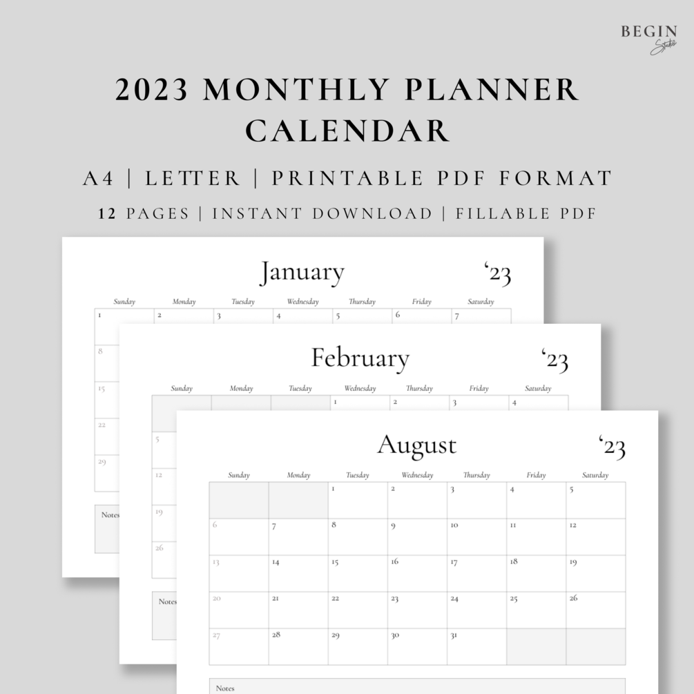 2023 Monthly Planner Printable | Dated Calendar Pages | Digital 2023 Desk Calendar | Month At a Glance | A4 / Letter Size | Instant Download | Digital Planner