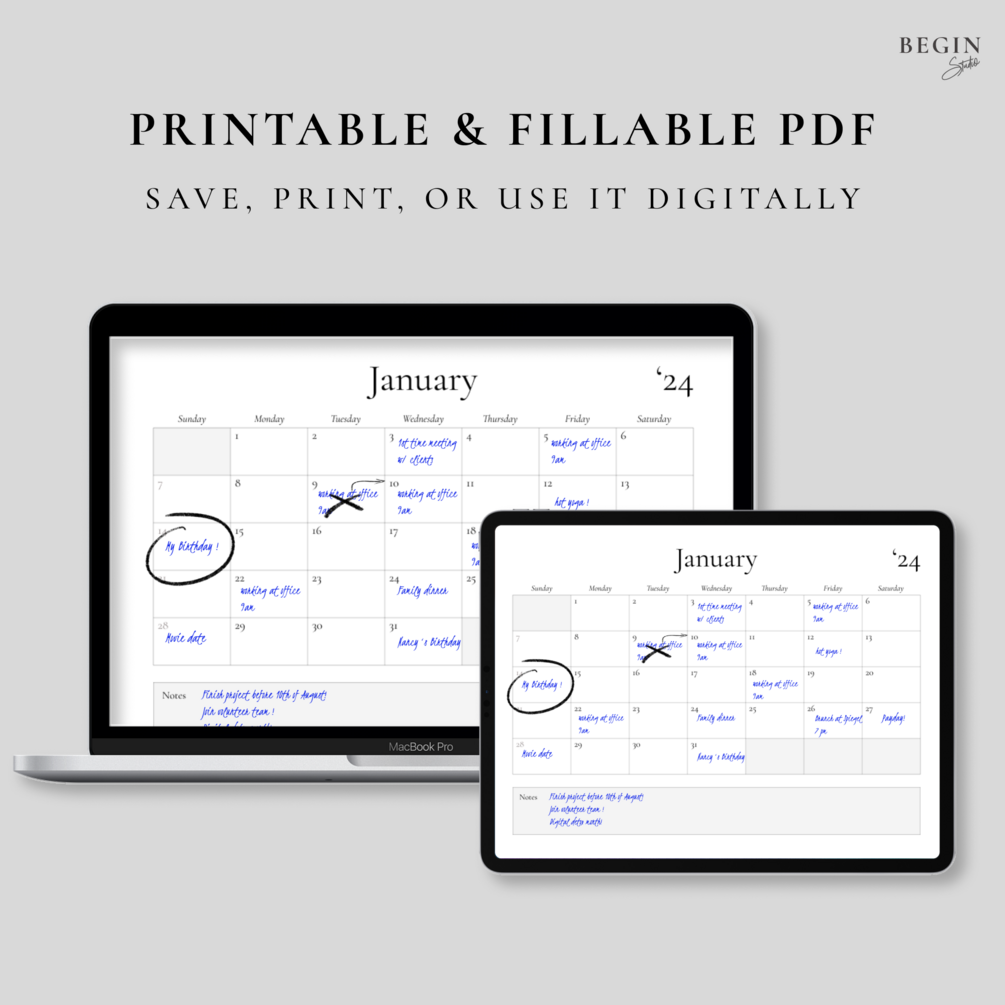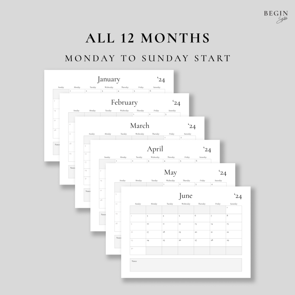 Each month is presented on a single page, with ample space to write down important dates, appointments, and tasks. The simple, yet stylish design makes it easy to read and use, ensuring you stay on top of your schedule without sacrificing your sense of style.