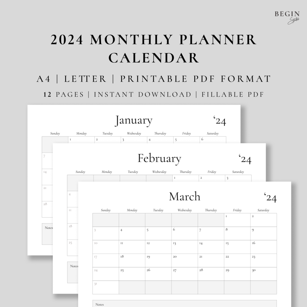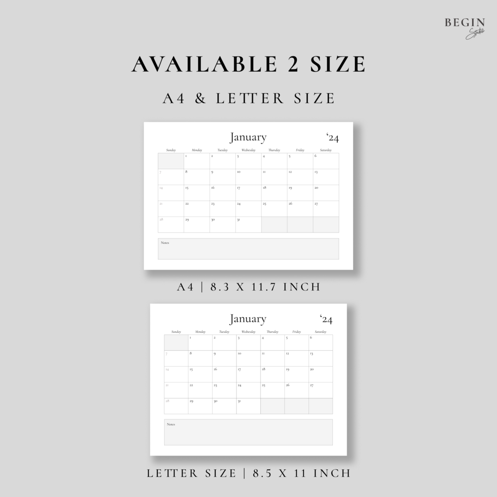 2024 Monthly Planner Printable | Dated Calendar Pages | Digital 2024 Desk Calendar | A4 / Letter Size | Instant Download | Digital Planner