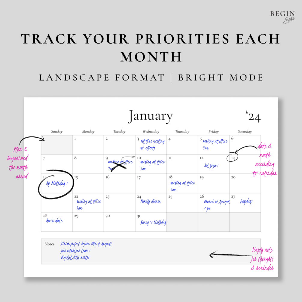 Introducing 12 Monthly Planner Page, designed for our customers who values simplicity and functionality. With its sleek and minimalistic layout, this planner page allows you to focus on what's important: planning and organizing your month.