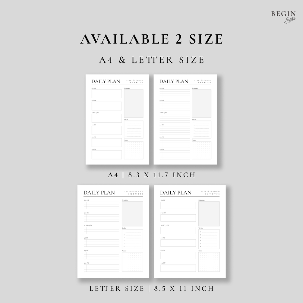 Introducing Undated Daily Planner page, designed for our customers who values simplicity and functionality. With its sleek and minimalistic layout, this planner page allows you to focus on what's important: planning and organizing your day.
