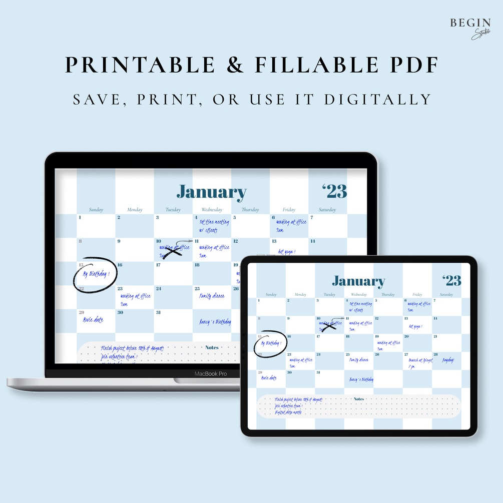 2023 Monthly Planner Printable | Dated Calendar Pages | Digital 2023 Desk Calendar | A4 / Letter Size | Instant Download | Digital Planner
