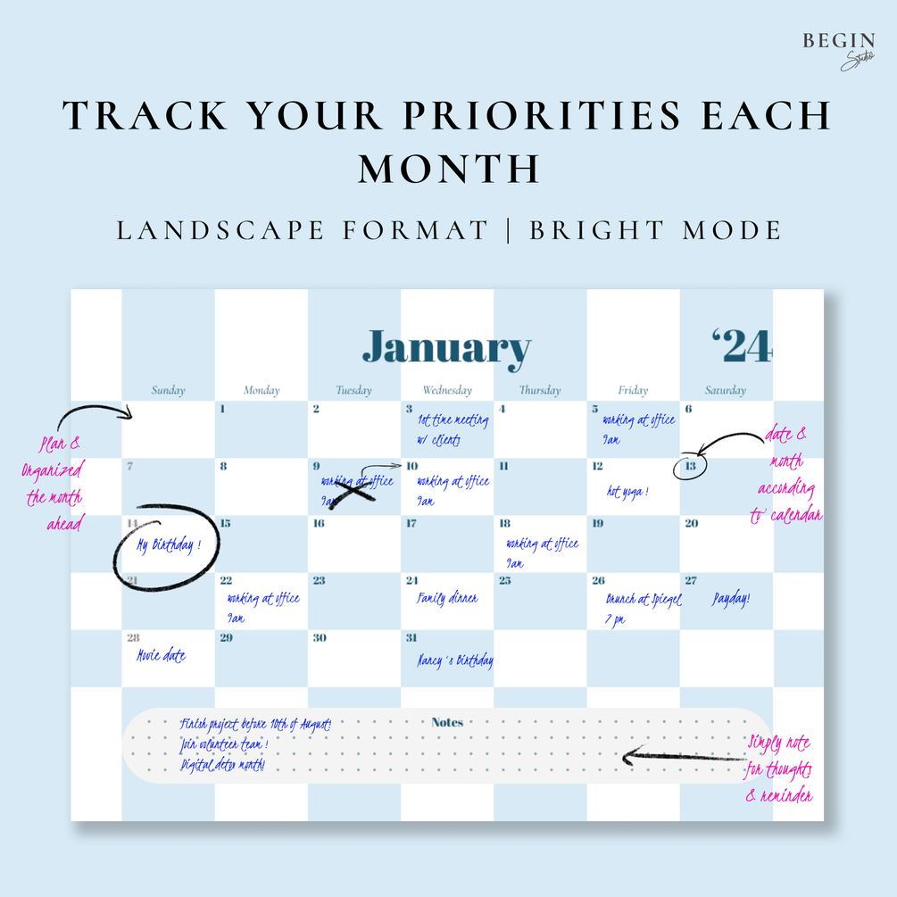 Introducing 12 Monthly Planner Page, designed for our customers who values simplicity and functionality. With its sleek and minimalistic layout, this planner page allows you to focus on what's important: planning and organizing your month.