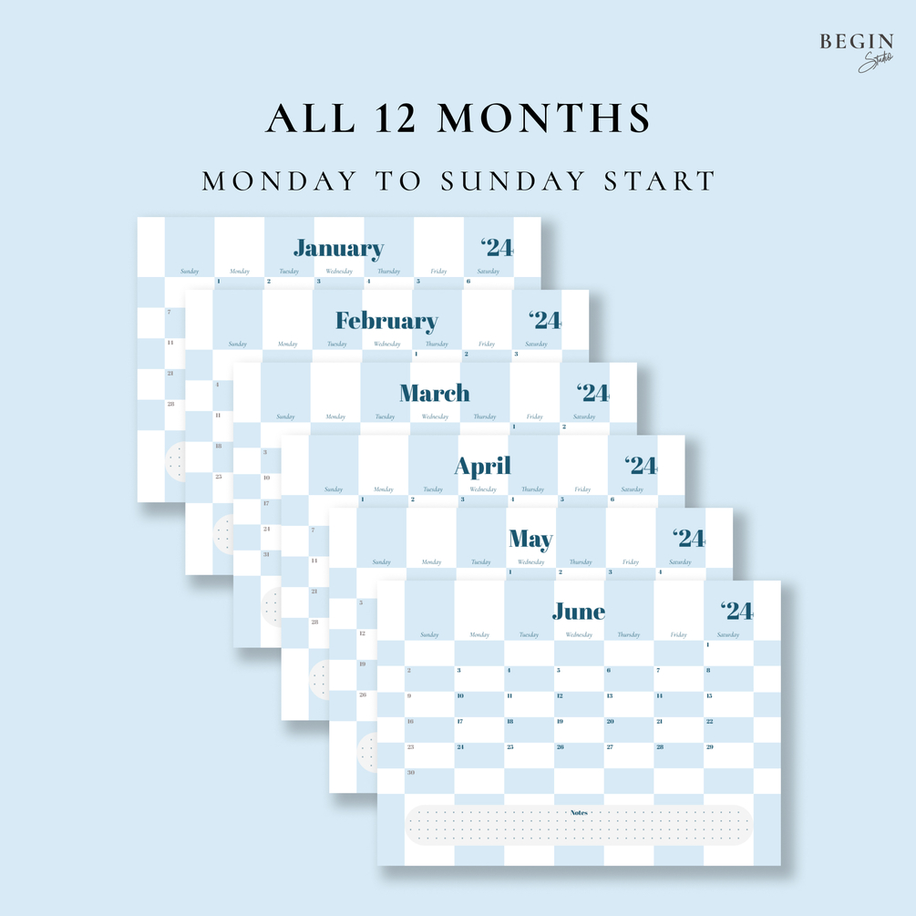 2024 Monthly Planner Printable | Dated Calendar Pages | Digital 2024 Desk Calendar | A4 / Letter Size | Instant Download | Digital Planner