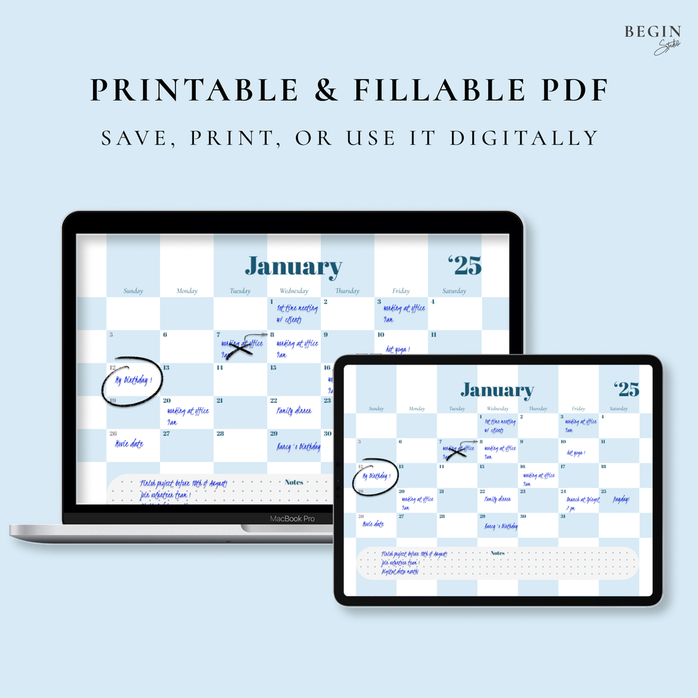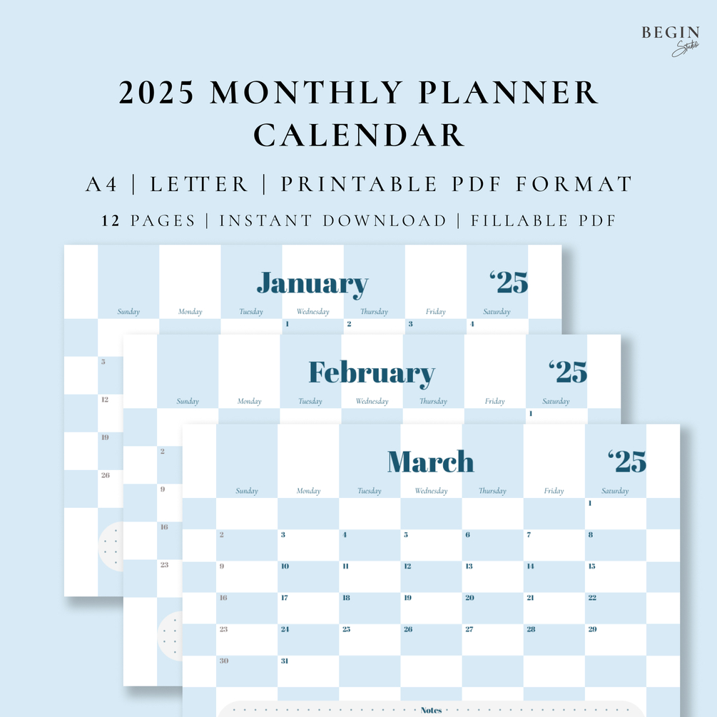 2025 Monthly Planner Printable | Dated Calendar Pages | Digital 2025 Desk Calendar | A4 / Letter Size | Instant Download | Digital Planner