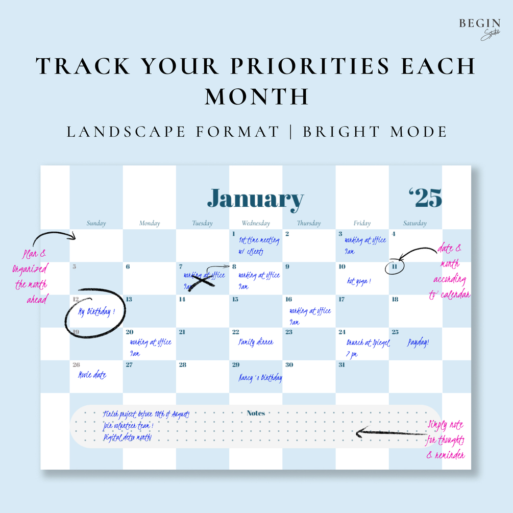 Each month is presented on a single page, with ample space to write down important dates, appointments, and tasks. The simple, yet stylish design makes it easy to read and use, ensuring you stay on top of your schedule without sacrificing your sense of style.